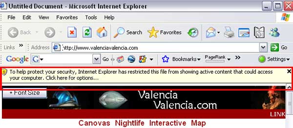 Enabling JavasciptWhat is that and how do I enable it?? You didn't come to this site to learn technical jargon, so apologies for that, but some parts of the site are not functional when Javascript (a programming language used in certain functions of web design) is disabled. Javascript gets blocked or disabled in the browser (the programme that you use to view websites - e.g. Internet Explorer or Firefox). This usually happens for two reasons: 1. Turned off on purposeIf you are using someone else's computer, e.g. in an internet cafe, the Javascript might have been turned off on purpose to avoid certain annoyances, such as pop-ups. Re-enabling it is very straightforward an takes only a few seconds. This page explains the steps graphically for Internet Explorer (in IE7 - the recent multi-tab one - you may have to press F10 first to call the Tools menu) In Mozilla Firefox go to Tools > Otions > Content icon (image of the globe) > make sure the "Enable JavaScrpit" is ticked > OK > close and re-open Firefox. 2. Default security setting on newer Internet ExplorerOn some newer versions of Internet Explorer the default security setting is protecting your screen from JavaScript (and many other useful things for that being), which is very annoying because you have to give it permission every time. Unfortunately the message you get at the top of the window is very vague and you don't even have an idea that it has to do with JavaScipt, e.g.: